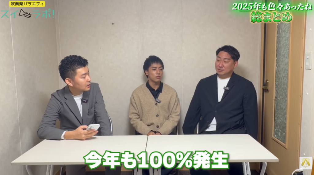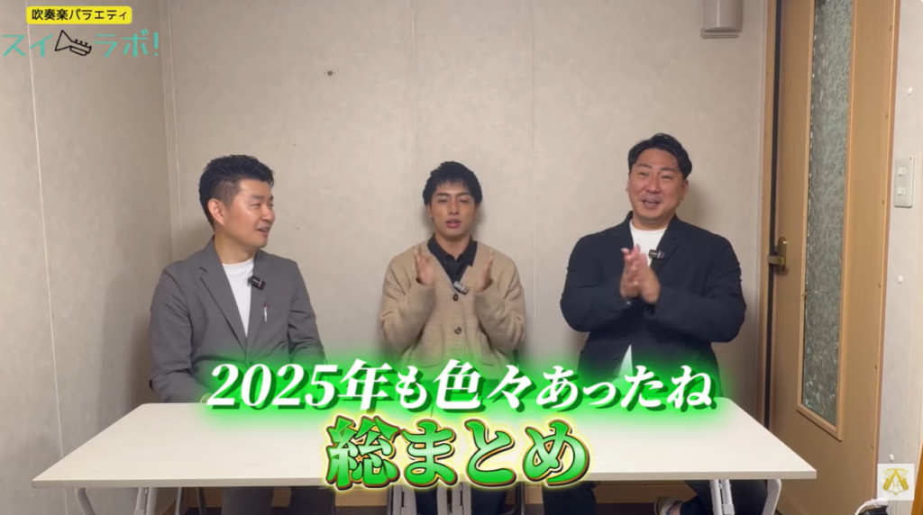 YouTubeチャンネル『服部管楽器』の人気番組「スイラボ」第7回は、年内最後の放送として「2025年吹奏楽界総まとめ」を敢行‼️サックスの金ちゃん、打楽器のスナミート、楽器屋の服部さんの3人が、現場の悲鳴🤣と喜び🥰が入り混じる2025年を振り返りました🎵
